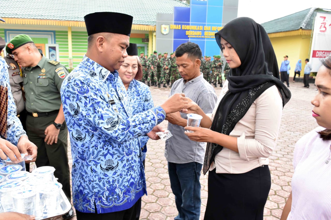 Bertindak sebagai Inspektur Upacara Wabup Sergai H.Darma Wijaya dan turut di hadiri Wakapolres Sergai Kompol Edi Bona Sinaga, Kasdim 0204/DS Mayor Inf Mukhsin SAg, Kakan Kemenag Dr H Syafii MA, Para Asisten, Staf Ahli Bupati, Kepala OPD, Camat, Pejabat Administrator Pengawas, Satu Pleton Anggota TNI dan ratusan ASN di Lingkungan Pemkab Sergai.