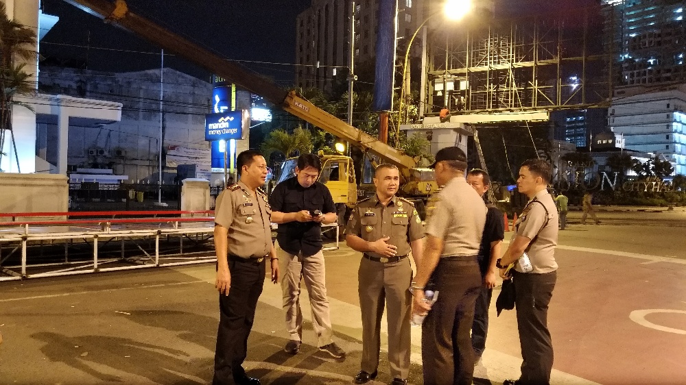 Pembongkaran ini dibantu oleh sejumlah tenaga profesional dan beberapa unit truk crane besar untuk mengangkut materil konstruksi reklame, ditambah dukungan mobil tangga Dinas Kebersihan dan Pertamanan, Truk barang Pol PP, serta mesin las potong yang digunakan untuk mengeksekusi reklame tersebut.