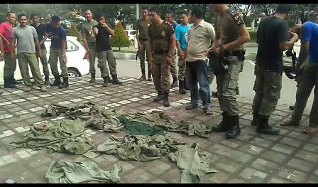 Sebelum Pertemuan dan musyawarah tersebut membuahkan hasil hingga puluhan anggota Satpol PP dan WH sepakat membubarkan diri hingga pukul 17.00Wib lewat karena merasa uneg-uneg jatah uang operasional yang lenyap sudah tertampung, para petugas pengamanan dan ketertiban kantor pemerintahan tersebut sempat melakukan aksi melepas dan mengumpulkan uniform yang mereka kenakan depan teras kantor Bupati.