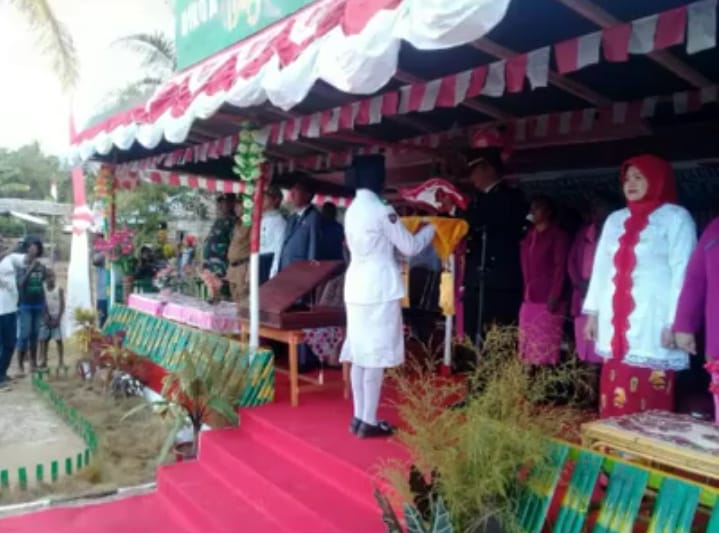 Pada pelaksanaan pengibaran bendera yang di iringi dengan lagu kebangsaan Indonesia Raya berjalan dengan penuh khidmat oleh peserta dan hadirin hingga pengibaran bendera berhasil di kibarkan dengan sempurna.