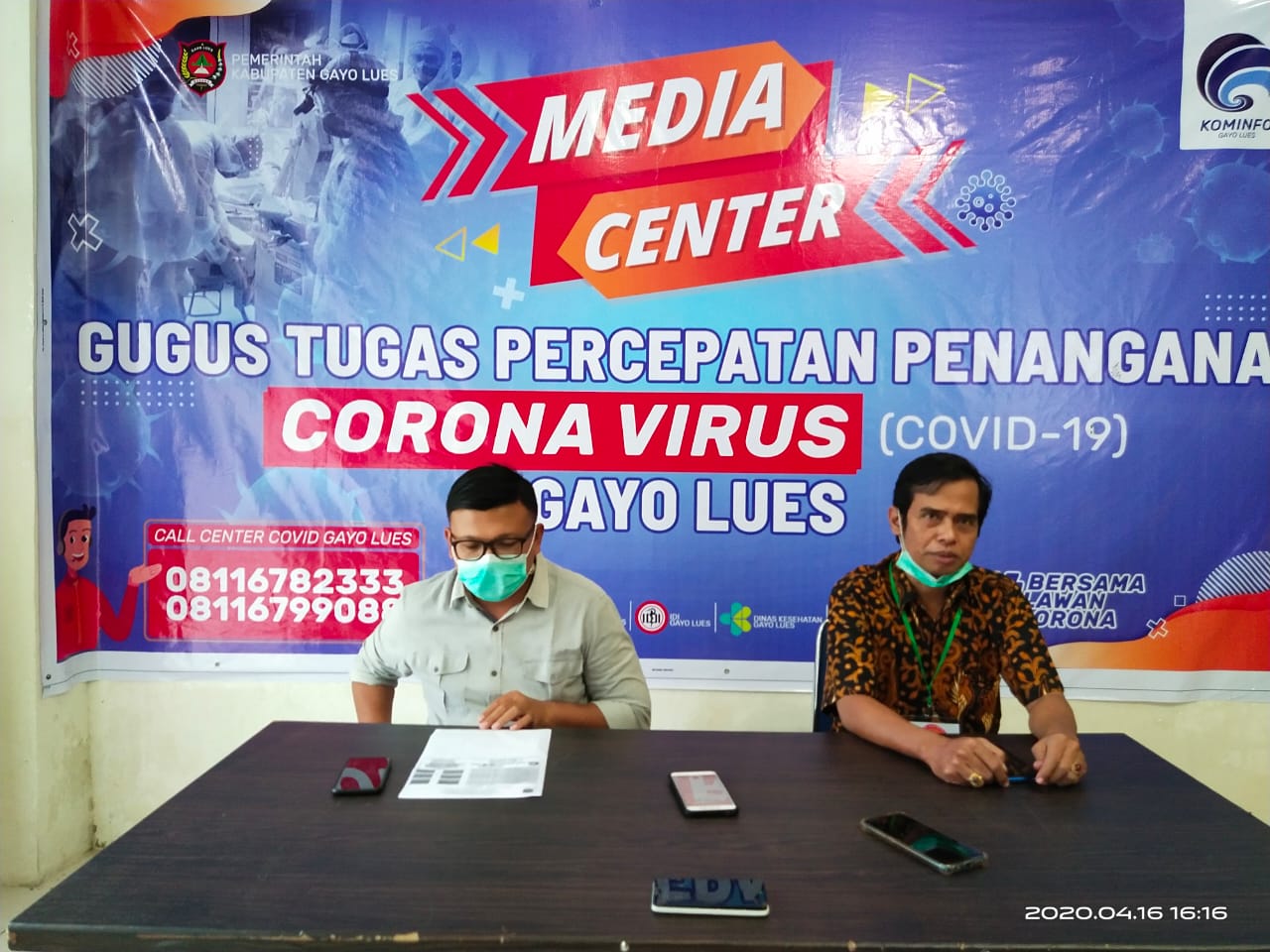 Ketua IDI Kabupaten Gayo Lues dr. Safwan Azhari,Sp.B Sebagai Juru Bicara Tim Gugus Tugas Percepatan Penanganan Covid-19 Kabupaten Gayo Lues menyampaikan Data Update perkembangan penanganan Corona Virus Disease (Covid-19) Wilayah Gayo Lues didampingi didampingi Abdiansyah Kabid e-Government dan Teknologi Informasi Komunikasi (TIK) Dinas Kominfo Kabupaten Gayo Lues di Bale Musara Blangkejeren menyampaikan kondisi terkait penanganan Covid-19 pada hari ini orang Tanpa Gejala (OTG) 1224, Orang Dalam Pemantauan (ODP) sebanyak 34 dan 1 orang Pasien Dalam Pemantauan ( PDP ).