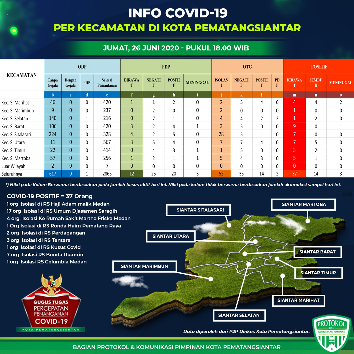 SIANTAR I bongkarnews.com – Update Data Pasien terkait COVID-19 di Kota Siantar