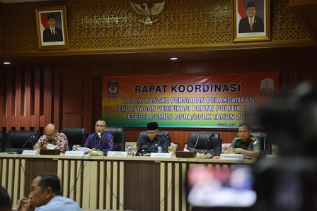 Banda Aceh | BN – Wakil Guber Aceh, Nova Iriansyah membuka Rapat Koordinasi dalam rangka persiapan pelaksanaan pendaftaran verifikasi partai politik lokal peserta pemulu DPRA/DPRK tahun 2019 di Gedung Serbaguna Setda Aceh, Jumat, (22/09/17).