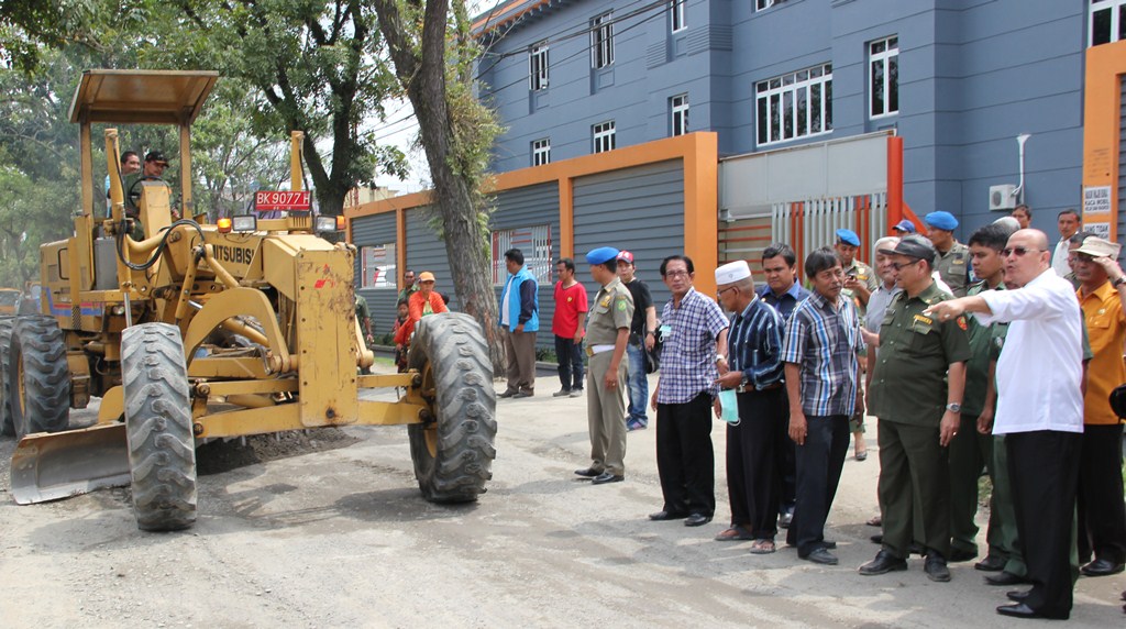 “Salah satu yang menjadi pemicu kerusakan jalan akibat sering digenangi air. Untuk itulah mari kita bersama-sama menjaga kebersihan parit agar tidak tersumbat, termasuk mengawasi lubang inlet yang ada di trotoar jalan bersama dengan apratur kecamatan, kelurahan dan kepala lingkungan agar tidak tersumbat sehingga air yang menggenangi jalan bis alnacar mengalir ke dalam parit,” harapnya.