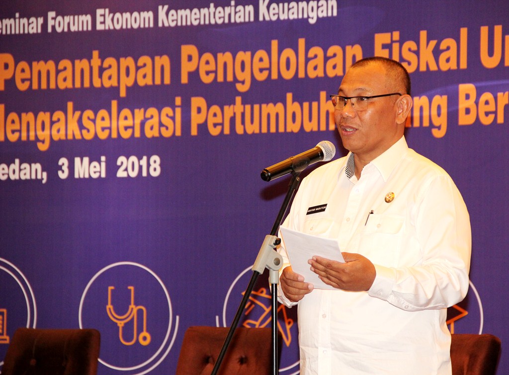 Medan,BN- Wali Kota Medan, Drs. H.T Dzulmi Eldin S.M.Si diwakili Wakil Wali Kota Medan, Ir. H.Akhyar Nasution,M.Si secara resmi membuka seminar forum ekonomi yang diselenggarakan oleh Kementerian Keuangan RI dengan tema “Penetapan Pengelolaan Fiskal Untuk Mengakselerasi Pertumbuhan yang Berkeadilan” di Hotel Grand Aston Medan, (3/5).