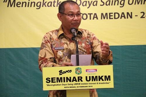 Medan | Bongkarnews.com- Wali Kota Medan Drs.H.T Dzulmi Eldin S, M.Si.,M.H dihadiri Wakil Wali Kota Medan Ir. H. Akhyar Nasution, M.Si membuka Seminar Inovasi dan Kreativitas UMKM di Hotel Garuda Plaza Medan, Kamis (28/02). Diharapkan Seminar ini dapat mewujudkan inovasi dan kreativitas para pelaku UMKM untuk memasarkan produk usahanya.