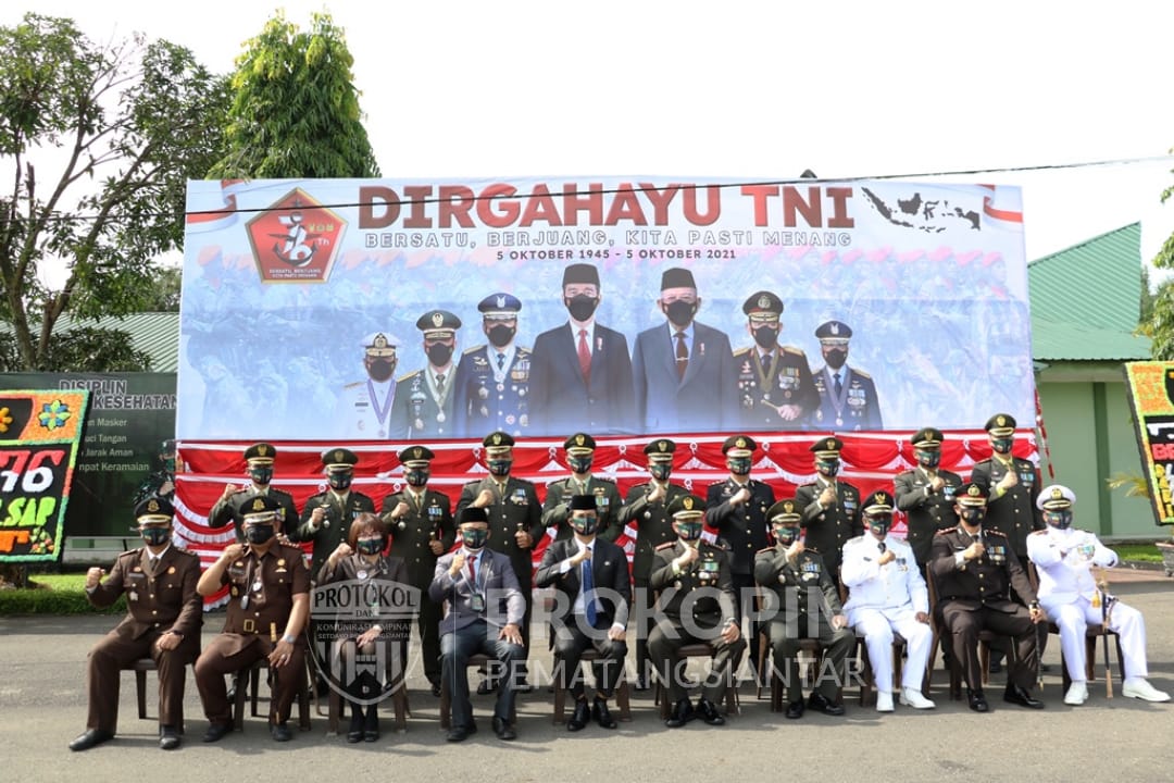 menghadiri upacara peringatan HUT Ke-76 TNI tahun 2021 secara virtual, Selasa ( 05- 10 – 2021) di Aula Makorem 022/PT
