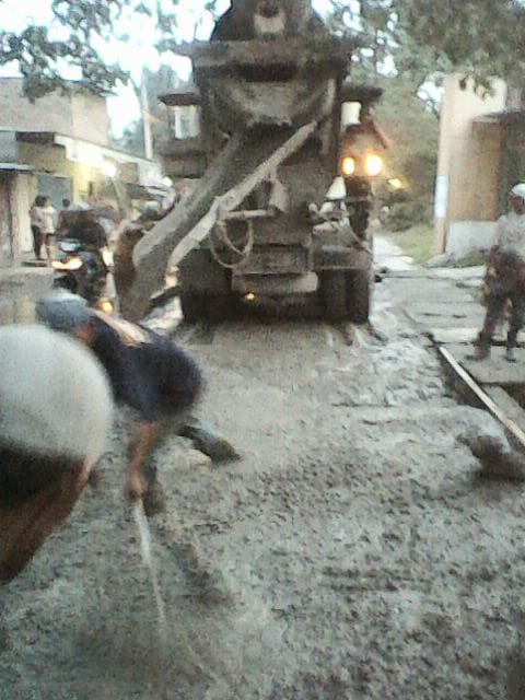 Berdasarkan amatan di lapangan, proses pembetonan berjalan dengan lancar. Sejumlah truk molen yang berisi coran tampak silih berganti menuangkan coran di atas pemukaan jalan rusak yang telah dimal dan dilengkapi dengan tikar besi sehingga pembetonan semakin lebih kuat.