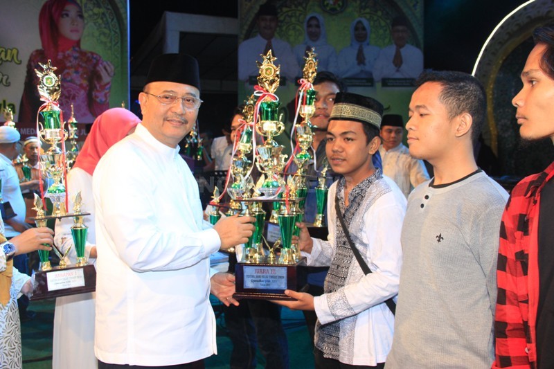 Medan,BN- Wali Kota Medan, Drs H T Dzulmi Eldin S MSi menutup Ramadhan Fair XIV Tahun 2017 di Taman Sri Deli Jalan Sisingamangaraja Medan, Kamis (22/6). Selama sebulan perhelatan ini digelar, sekitar 20.000 pengunjung hadir untuk menikmati aneka kuliner maupun hiburan bernuansa religi yang dihadirkan setiap malamnya. Event yang telah memasuki tahun ke-14 ini digelar dalam rangka memeriahkan suasana Ramadhan di Kota Medan.