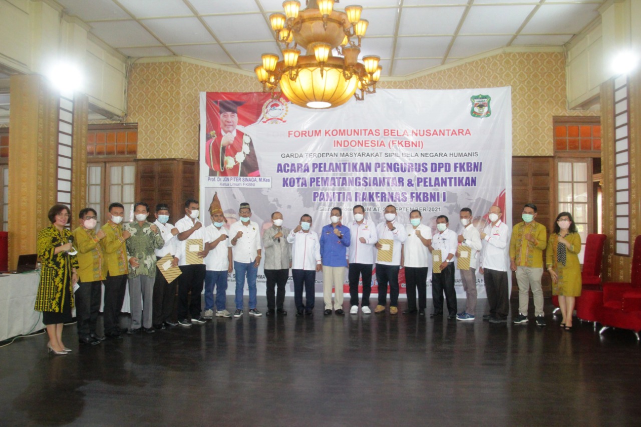 Pelantikan DPD FKBNI Kota Pematangsiantar ditandai dengan penyematan Pin oleh Ketua Umum DPP FKBNI, Prof.DR. Jon Piter Sinaga bersama Plh. Sekda Kota Pematangsiantar, Zainal Siahaan, SE. MM dan Ketua DPRD Kota Pematangsiantar Timbul Marganda Lingga, SH, serta dilanjutkan penyerahan pataka oleh Ketua DPW FKBNI Sumatera Utara,