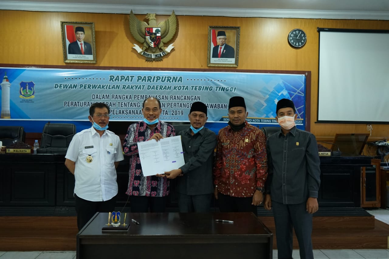 Rapat yang dipimpin Ketua DPRD Basyaruddin Nasution SH, dihadiri semua 6 (enam) Fraksi di DPRD Tebingtinggi yakni Fraksi Golkar, PDIP, Nasdem, Gerindra, Nurani Kebangsaan dan Fraksi Demokrat Amanah Keadilan (FDAK) menyetujui rancangan peraturan daerah (ranperda) tentang pelaksanaan APBD TA 2019 Kota Tebing Tinggi disahkan menjadi Peraturan Daerah (Perda).