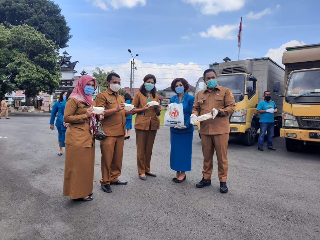 Usai menerima bantuan telur, Bupati Dairi bersama Ketua TP. PKK Dairi menyerahkan bantuan berupa telur dan masker kepada Camat Se-Kabupaten Dairi untuk dibagikan kepada masyarakat yang membutuhkan. (bd.007)