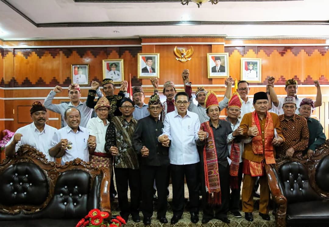 SUKADANA | Bongkarnews.com – Bupati Lampung timur Zaiful Bokhari menerima 9 Etnis yang telah melakukan ikatan persaudaraan Muakhei dengan bupati Lampung timur Rabu, (21/08/2019) diruang kerjanya.