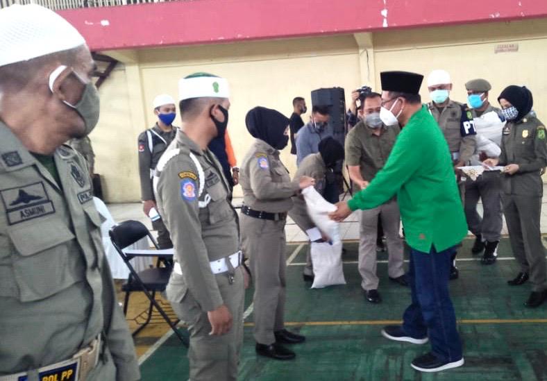 MEDAN I bongkarnews.com- Sebanyak 150 orang Pekerja Harian Lepas (PHL) menerima zakat yang terkumpul dari Aparatur Sipil Negara (ASN) pada Satuan Polisi Pamong Praja (Satpol PP) Kota Medan. Pemberian bantuan zakat ini merupakan bentuk kepedulian dari ASN kepada para PHL. Tujuan diserahkannya zakat ini agar membantu meringankan beban ekonomi para PHL ditengah keadaan pandemi Covid 19 yang tengah melanda Kota Medan.
