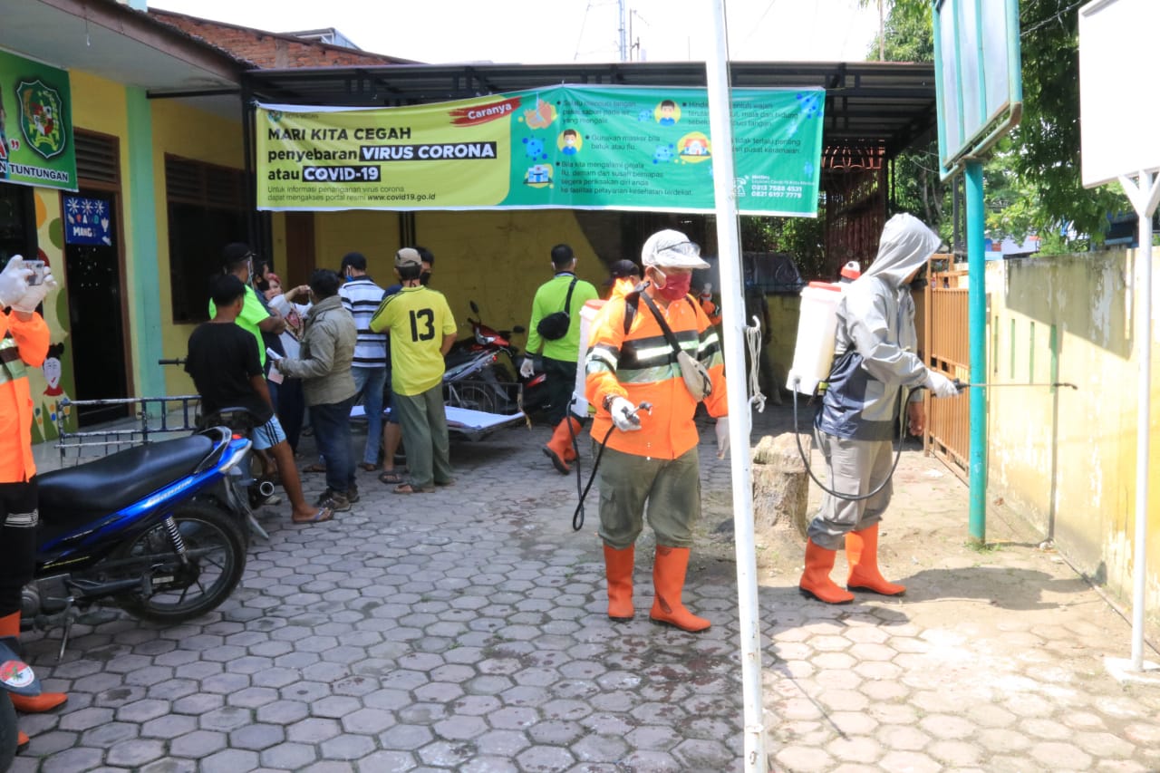 Terbukti, Rabu (15/4) Tim Gugus Tugas Percepatan Penanganan Covid-19 melakukan penyemprotan di salah satu kecamatan yang berada di zona merah yakni Kecamatan Medan Tuntungan.