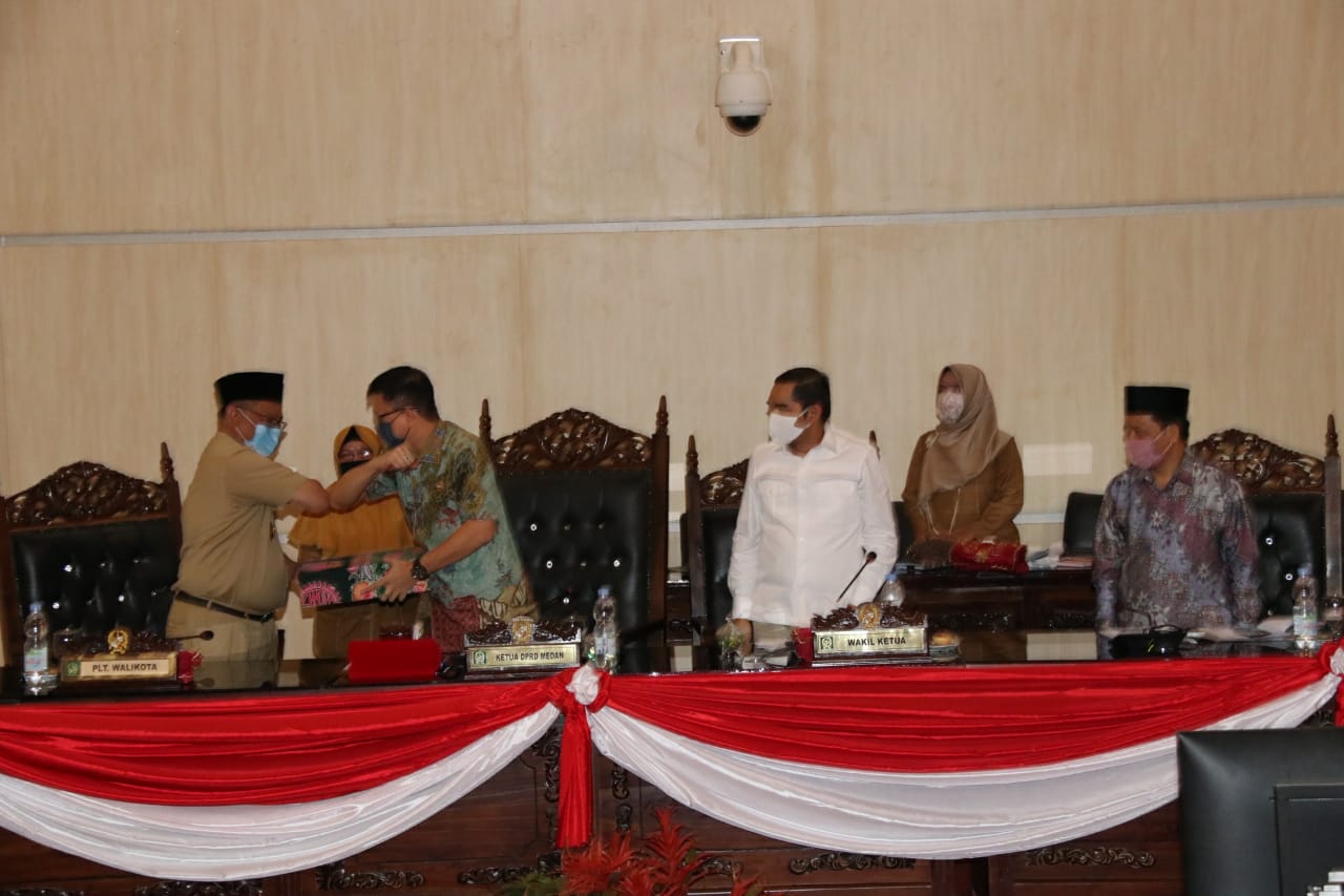 Nota pengantar itu disampaikan Akhyar kepada Ketua DPRD Medan Hasyim SE, para wakil ketua yakni Ihwan Ritonga, HT Bahrumsyah dan Rajuddin Sagala. Lalu para anggota dewan dan pimpinan organisasi perangkat daerah (OPD) di lingkungan Pemko Medan melalui sambungan video conference (Vidcon) guna mengikuti penerapan protokol kesehatan.