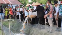 Pada kesempatan itu, Bupati menyampaikan bantuan 2.000 ekor ikan mas untuk dikembang biakkan di kolam yang sudah dipersiapkan.