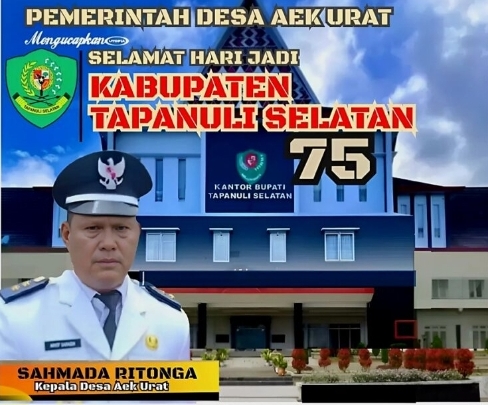 Dalam rangka memperingati Hari Ulang Tahun Kabupaten Tapanuli Selatan yang ke-75, Kepala Desa Aek Urat, Bapak Sahmada Ritonga, bersama seluruh warga Desa Aek Urat turut menyampaikan ucapan selamat dan apresiasi kepada masyarakat Kabupaten Tapanuli Selatan atas perjalanan panjang dalam membangun daerah.