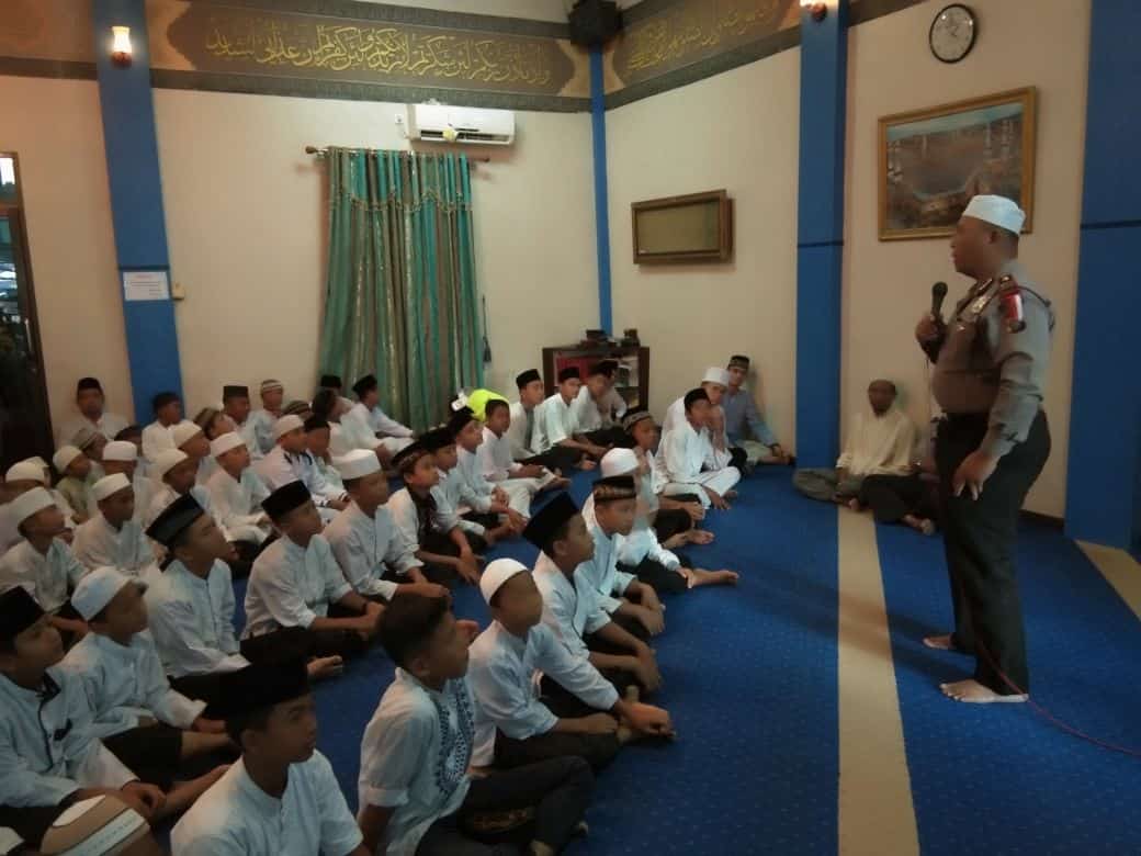 Usai memberikan kultum, Kasat Binmas mengakhiri kegiatan subuh dengan menyantuni 70 anak yatim.(Japar 007)