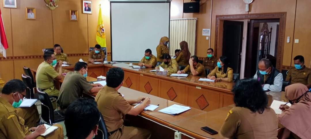 DAIRI | bongkarnews.com – Bupati Dairi Eddy Keleng Ate Berutu didampingi Sekretaris Daerah Kabupaten Dairi Drs. Leonardus Sihotang memberikan arahan kepada para Staf Ahli, Asisten dan Pimpinan OPD pada coffee morning yang dilaksanakan di ruang rapat Bupati Dairi dengan tetap mempedomani protokol kesehatan, Senin (13/7).