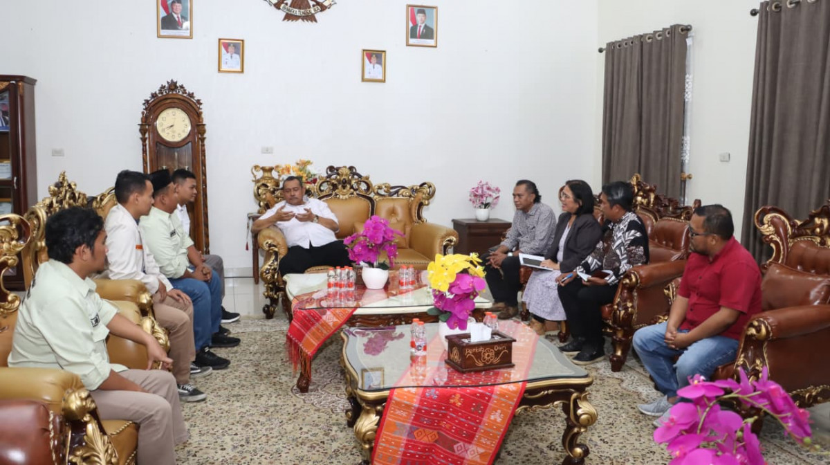 DAIRI | bongkarnews.com – Bupati Dairi Vickner Sinaga menerima audiensi Pimpinan Daerah (PD) Pemuda Muhammadiyah Kabupaten Dairi di Pendopo Bupati pada Rabu (17/9/2025). Dalam pertemuan tersebut, Bupati Dairi di dampingi oleh Asisten Administrasi Umum Oloan Hasugian, Kepala Bagian Kesra Ripmo Padang dan Kepala Bidang Pemuda dan Olahraga Jumali.