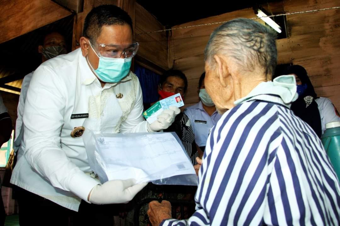 DAIRI | bongkarnews.com – Bupati Dairi Eddy Keleng Ate Berutu kunjungi dan berikan bantuan sosial berupa uang penghargaan, susu bubuk serta menyerahkan dokumen Kependudukan dan Kartu Indonesia Sehat (KIS) kepada salah satu Veteran, Valentin Sihombing (93) warga Desa Kuta Tengah, Kecamatan Siempat Nempu Hulu, Kabupaten Dairi, Rabu (14/10/2020)