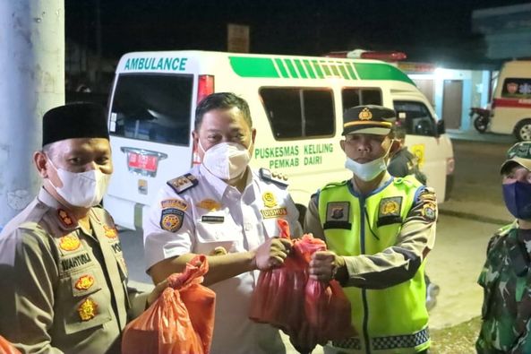Menurut Eddy Berutu atas kesiap siagaan seluruh tim yang menjalankan tugas di setiap pos pengamanan, maka Pemerintah Kabupaten Dairi bersama Unsur Forkopimda, memberikan bingkisan sembako sebagai bentuk dukungan kepada seluruh tim yang bertugas.