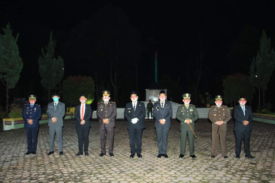 DAIRI | bongkarnews.com – Dalam rangka memperingati HUT ke-75 Tahun 2020 Kemerdekaan RI, Bupati dan Wakil Bupati Dairi Eddy Kelleng Ate Berutu dan Jimmy Andrea Lukita Sihombing SH bersama Forkopimda Kabupaten Dairi melaksanakan Upacara Renungan Suci, Senin (17/8/2020) tepat pukul 00.00 WIB di Taman Makam Pahlawan (TMP) Panji Sibura-bura, Sidikalang, Kabupaten Dairi.