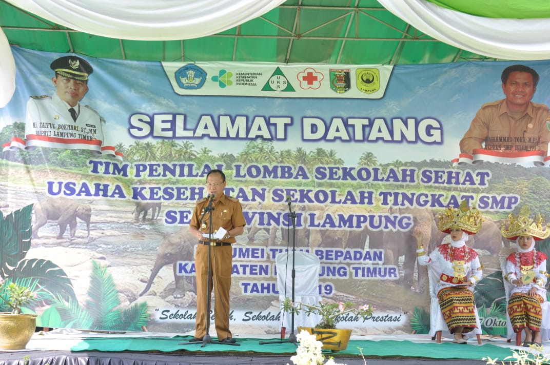 WAY JEPARA | Bongkarnews.com – Bupati Lampung Timur yang diwakili oleh Staf Ahli Bupati Bidang Kemasyarakatan dan Sumberdaya Manusia, Nur Syamsu Menerima Tim Penilai Kegiatan Lomba Sekolah Sehat atau Usaha Kesehatan Sekolah (LSS/UKS) Tingkat Provinsi Lampung Tahun 2019 dilaksanakan di SMP Islam YPI 3 Way Jepara Kabupaten Lampung Timur, Senin (07/10/2019). Dalam Acara Yang Mengusung Tema “Sekolah Bersih, Sekolah Sehat, Sekolah Prestasi” Tersebut Hadir Pula Ketua TP PKK Kabupaten Lampung Timur, Putri Ernawati Zaiful Bokhari, Kepala Biro Kesejateraan Sosial Provinsi Lampung, Dra. Ratna Dewi, M.M, beserta Tim Penilai, Kepala Bagian Kesejahteraan Rakyat Setdakab Lampung Timur, Umar Husni Sanjaya, Camat Way Jepara, Supriyanto, beserta forkopimcam kecamatan Way Jepara, Kepala Sekolah SMP Islam YPI 3 Way Jepara, Muhammad Toha S.Pd.I, beserta jajaran dewan guru. Sebagaimana kita ketahui bersama bahwa pembinaan dan pengembangan Usaha Kesehatan Sekolah adalah upaya pendidikan dan kesehatan yang dilaksanakan secara terpadu, sadar, berencana, terarah dan bertanggung jawab dalam menanamkan, menumbuhkan, mengembangkan dan membimbing untuk menghayati, menyenangi dan melaksanakan prinsip hidup sehat dalam kehidupan peserta didik sehari-hari. Dalam sambutannya mewakili Bupati Lampung Timur, Nur Syamsu menyampaikan kepada kepala sekolah dan guru harus membimbing, mengarahkan dan mengajak serta memberikan contoh kepada para peserta didiknya, mengenai perilaku hidup bersih dan sehat. “Peserta didik sendiri harus dilibatkan secara langsung dalam menciptakan lingkungan sekolah yang bersih, nyaman dan sejuk. Kemudian kepala sekolah dan dewan guru harus membimbing, mengarahkan dan mengajak serta memberikan contoh kepada para peserta didiknya, mengenai perilaku hidup bersih dan sehat”. Dengan telah diberlakukannya Undang-Undang No. 32 Tahun 2004 tentang Pemerintah Daerah, maka berbagai program pelaksanaan UKS disetiap daerah pada dasarnya sepenuhnya diserahkan kepada Tim Pembina UKS di daerah masing-masing untuk menentukan prioritas programnya, namun berdasarkan pengamatan Tim Pembina UKS Pusat, ternyata pelaksanaan UKS sampai dengan saat ini dirasakan masih kurang sesuai dengan yang diharapkan. Nur Syamsu meminta seluruh Tim Pembina UKS untuk lebih mengoptimalkan kinerjanya dalam meningkatkan kemajuan UKS. “Oleh karena itu, pada kesempatan ini saya meminta kepada seluruh Tim Pembina UKS untuk lebih mengoptimalkan kinerjanya dalam meningkatkan kemajuan UKS, terutama dalam mewujudkan peserta didik yang berkualitas dan sehat, baik secara fisik, mental, sosial maupun lingkungan. Berkaitan dengan hal tersebut maka dilaksanakanlah lomba sekolah sehat Usaha Kesehatan Sekolah”. Ditempat yang sama Kepala Biro Kesejateraan Sosial Provinsi Lampung, Dra. Ratna Dewi, M.M mewakili Gubernur Lampung menyampaikan ucapan rasa terimakasih dan penghargaan kepada tim pembina usaha kesehatan sekolah tingkat kabupaten/kota, kecamatan, dan tim pelaksana UKS disekolah serta seluruh forum yang terkait khususnya di kabupaten Lampung Timur atas terselenggaranya kegiatan penilaian ini Ujarnya. Setelah acara selesai dilanjutkan dengan arahan dan pembinaan dari tim penilai kepada kepala sekolah dan dewan guru. (Rizky)Bupati Lamtim Menerima Tim Penilai Kegiatan LSS/UKS Tingkat Provinsi Lampung Tahun 2019 Bongkarnews.com Way Jepara – Bupati Lampung Timur yang diwakili oleh Staf Ahli Bupati Bidang Kemasyarakatan dan Sumberdaya Manusia, Nur Syamsu Menerima Tim Penilai Kegiatan Lomba Sekolah Sehat atau Usaha Kesehatan Sekolah (LSS/UKS) Tingkat Provinsi Lampung Tahun 2019 dilaksanakan di SMP Islam YPI 3 Way Jepara Kabupaten Lampung Timur, Senin (07/10/2019). Dalam Acara Yang Mengusung Tema “Sekolah Bersih, Sekolah Sehat, Sekolah Prestasi” Tersebut Hadir Pula Ketua TP PKK Kabupaten Lampung Timur, Putri Ernawati Zaiful Bokhari, Kepala Biro Kesejateraan Sosial Provinsi Lampung, Dra. Ratna Dewi, M.M, beserta Tim Penilai, Kepala Bagian Kesejahteraan Rakyat Setdakab Lampung Timur, Umar Husni Sanjaya, Camat Way Jepara, Supriyanto, beserta forkopimcam kecamatan Way Jepara, Kepala Sekolah SMP Islam YPI 3 Way Jepara, Muhammad Toha S.Pd.I, beserta jajaran dewan guru. Sebagaimana kita ketahui bersama bahwa pembinaan dan pengembangan Usaha Kesehatan Sekolah adalah upaya pendidikan dan kesehatan yang dilaksanakan secara terpadu, sadar, berencana, terarah dan bertanggung jawab dalam menanamkan, menumbuhkan, mengembangkan dan membimbing untuk menghayati, menyenangi dan melaksanakan prinsip hidup sehat dalam kehidupan peserta didik sehari-hari. Dalam sambutannya mewakili Bupati Lampung Timur, Nur Syamsu menyampaikan kepada kepala sekolah dan guru harus membimbing, mengarahkan dan mengajak serta memberikan contoh kepada para peserta didiknya, mengenai perilaku hidup bersih dan sehat. “Peserta didik sendiri harus dilibatkan secara langsung dalam menciptakan lingkungan sekolah yang bersih, nyaman dan sejuk. Kemudian kepala sekolah dan dewan guru harus membimbing, mengarahkan dan mengajak serta memberikan contoh kepada para peserta didiknya, mengenai perilaku hidup bersih dan sehat”. Dengan telah diberlakukannya Undang-Undang No. 32 Tahun 2004 tentang Pemerintah Daerah, maka berbagai program pelaksanaan UKS disetiap daerah pada dasarnya sepenuhnya diserahkan kepada Tim Pembina UKS di daerah masing-masing untuk menentukan prioritas programnya, namun berdasarkan pengamatan Tim Pembina UKS Pusat, ternyata pelaksanaan UKS sampai dengan saat ini dirasakan masih kurang sesuai dengan yang diharapkan. Nur Syamsu meminta seluruh Tim Pembina UKS untuk lebih mengoptimalkan kinerjanya dalam meningkatkan kemajuan UKS. “Oleh karena itu, pada kesempatan ini saya meminta kepada seluruh Tim Pembina UKS untuk lebih mengoptimalkan kinerjanya dalam meningkatkan kemajuan UKS, terutama dalam mewujudkan peserta didik yang berkualitas dan sehat, baik secara fisik, mental, sosial maupun lingkungan. Berkaitan dengan hal tersebut maka dilaksanakanlah lomba sekolah sehat