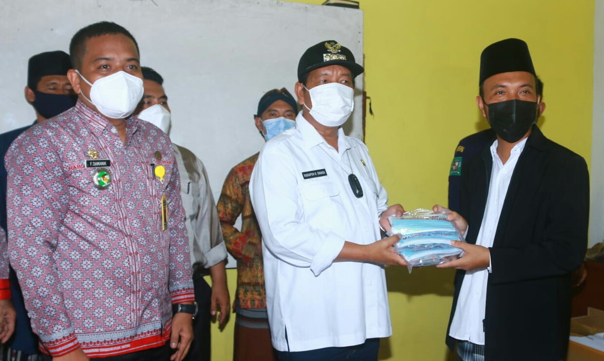 Simalungun I bongkarnews.com-Bupati Simalungun Radiapoh Hasihaolan Sinaga SH MH memberikan paket vitamin, masker dan sembako di Pesantren Sabilusalam Kelurahan Ujung Padang Kecamatan Ujung Padang Kabupaten Simalungun, Sumut, Jum’at (8/10/2021).