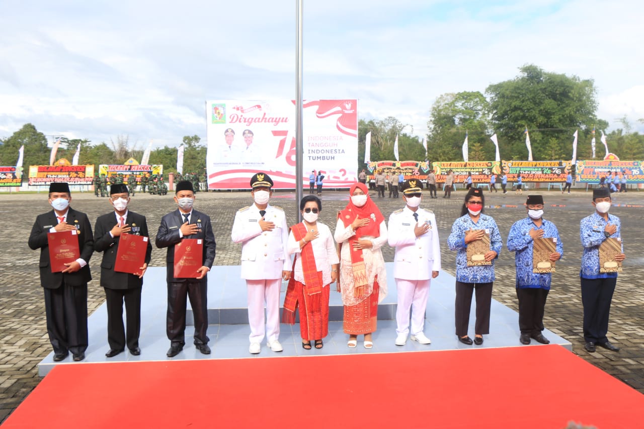 SIMALUNGUN I bongkarnews.com- Upacara peringatan ke 76 hari proklamasi kemerdekaan Republik Indonesia tahun 2021 Kabupaten Simalungun, di pusatkan di halaman kantor Bupati Simalungun, Pamatang Raya, Selasa 17/08/2021.