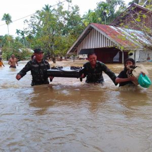 Personil TNI EVakuasi Korban Banjir Aceh Jaya
