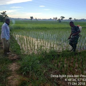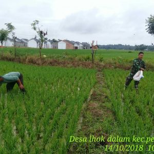 Babinsa Ramil 04/PLK, Bantu Masyarakat Petani Nyemprot Padi