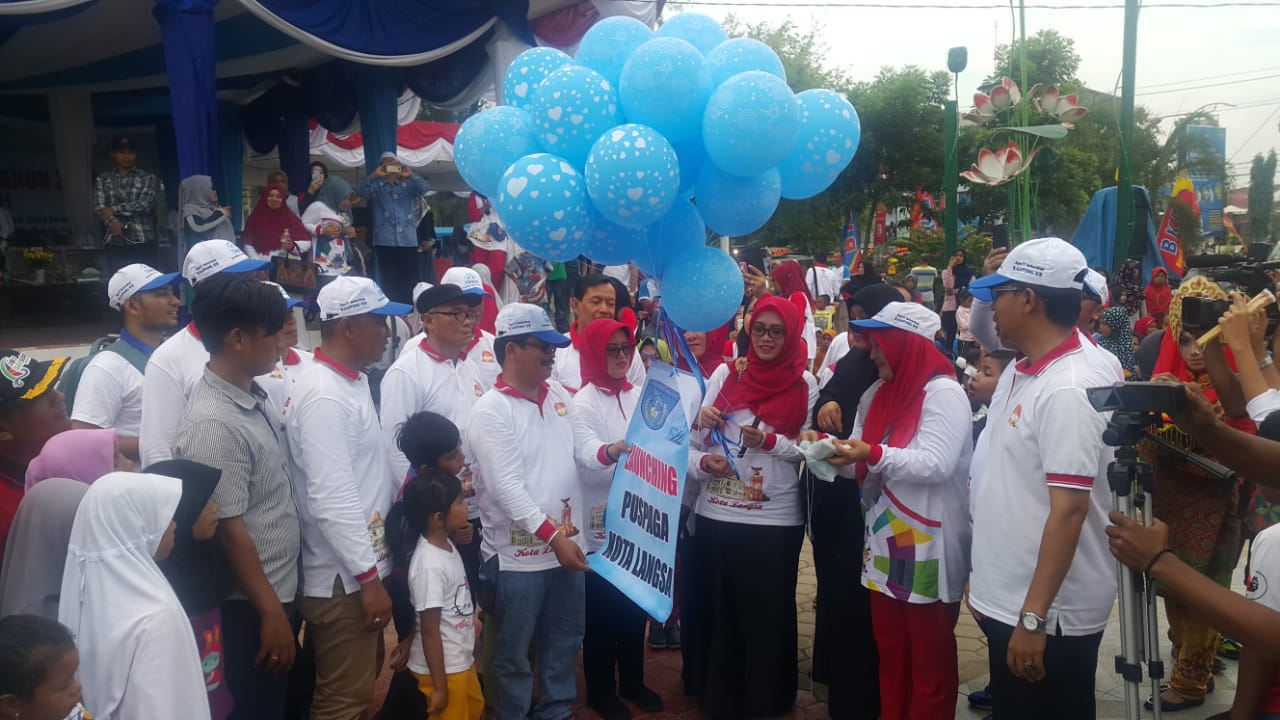 Acara peringatan Harganas ini ditandai dengan pelepasan balon ke udara sebagai tanda peresmian Pencanangan Pusat Perbelanjaan Kota Langsa tandasnya. (Zainal/Ardian).