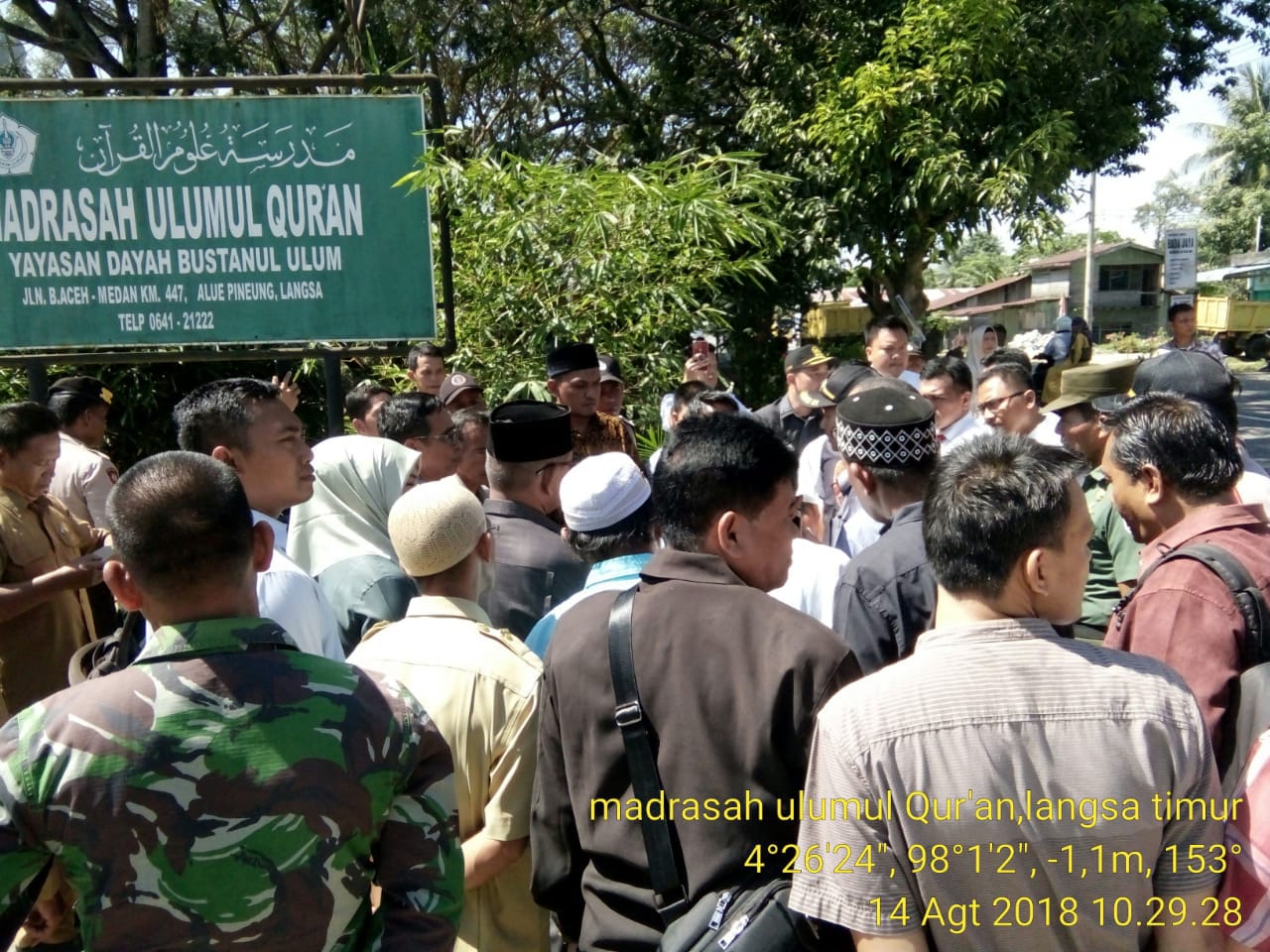 Danramil 23/Lgst mengatakan kronologis singkat di Tempat Kejadian Perkara, menurut versi Bp. Faisal Hasan sebagai mantan pembina yayasan MUQ pada periode 2009 s/d 2010. Yayasan MUQ dalam pengelolaan periode sekarang tidak dilaksanakan dengan maksimal baik, bahkan ada juga pembina (pendidik) yg di keluarkan oleh ketua yayasan sekarang tampa ada penjelasan yang jelas. Dan juga aset aset yayasan yANG tidak dimanfaatkan secara baik dan benar, serta banyak juga hal-hal yg lainnya.