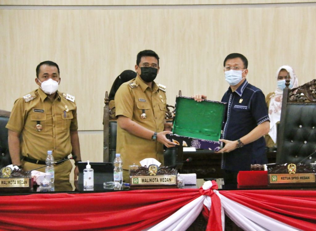 MEDAN I bongkarnews.com- Pemko Medan menerima hasil reses masa sidang kedua tahun kedua tahun 2021 anggota DPRD kota Medan dari daerah pemilihan I sampai dengan V. Hasil reses tersebut diserahkan langsung Ketua DPRD Kota Medan, Hasyim SE kepada Wali Kota Medan, Muhammad Bobby Afif Nasution SE MM melalui sidang paripurna DPRD Kota Medan di Gedung DPRD Kota Medan, Selasa (23/03/2021).