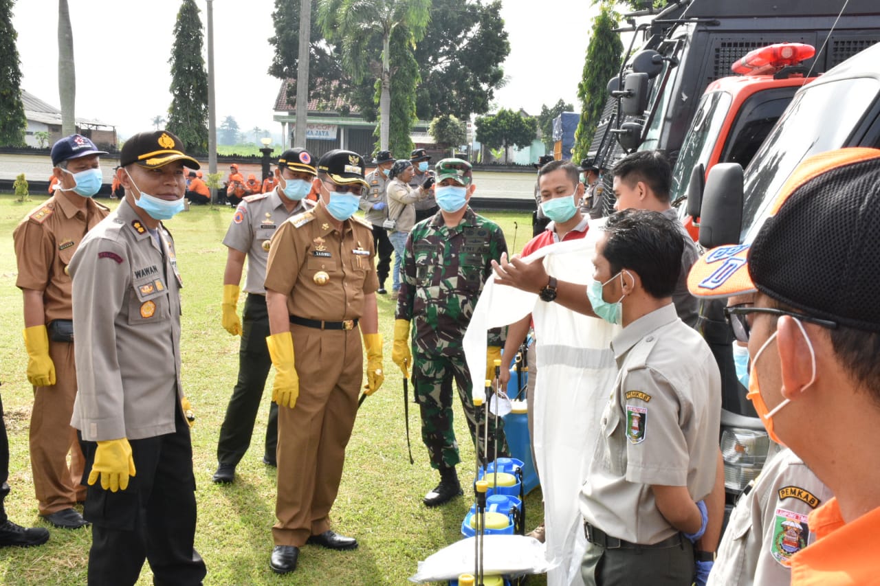 “Semua sudah terbagi baik personil maupun peralatannya, mari kita laksanakan kegiatan ini dengan penuh keikhlasan sehingga menjadi amal ibadah untuk kita semua, dan semoga upaya yang kita lakukan bersama ini dapat mencegah tersebarnya virus corona khususnya di kabupaten Lampung Timur”.
