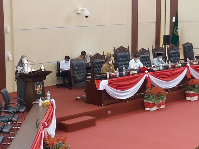 MEDAN I bongkarnews.com- Beberapa perwakilan dari fraksi di DPRD Kota Medan, menyampaikan padangan umum terhadap Rancangan Peraturan Daerah (Ranperda) Kota Medan tentang Penyelenggaraan Perpustakaan Kota Medan saat sidang Paripurna, di ruangan Paripurna, Gedung DPRD Medan, Jalan Kapten Maulana Lubis, Kota Medan, Senin (24/05/2021).