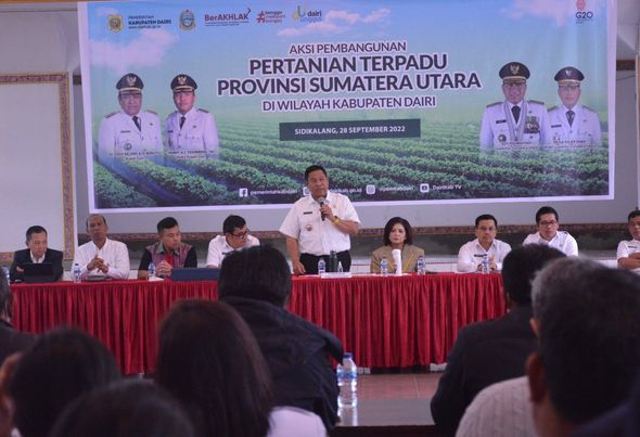 “Maka hari ini kita pastikan kita membangun sebuah pertanian terpadu atau food estate harus melibatkan semua stakeholder sehingga dari segi pembiayaan tidak tergantung APBD. Tentunya Pemerintah Provinsi Sumatera Utara dan kabupaten Dairi bisa memfasilitasi infrastruktur seperti akses jalan pertanian, embung, internet dan lain sebagainya,” katanya.