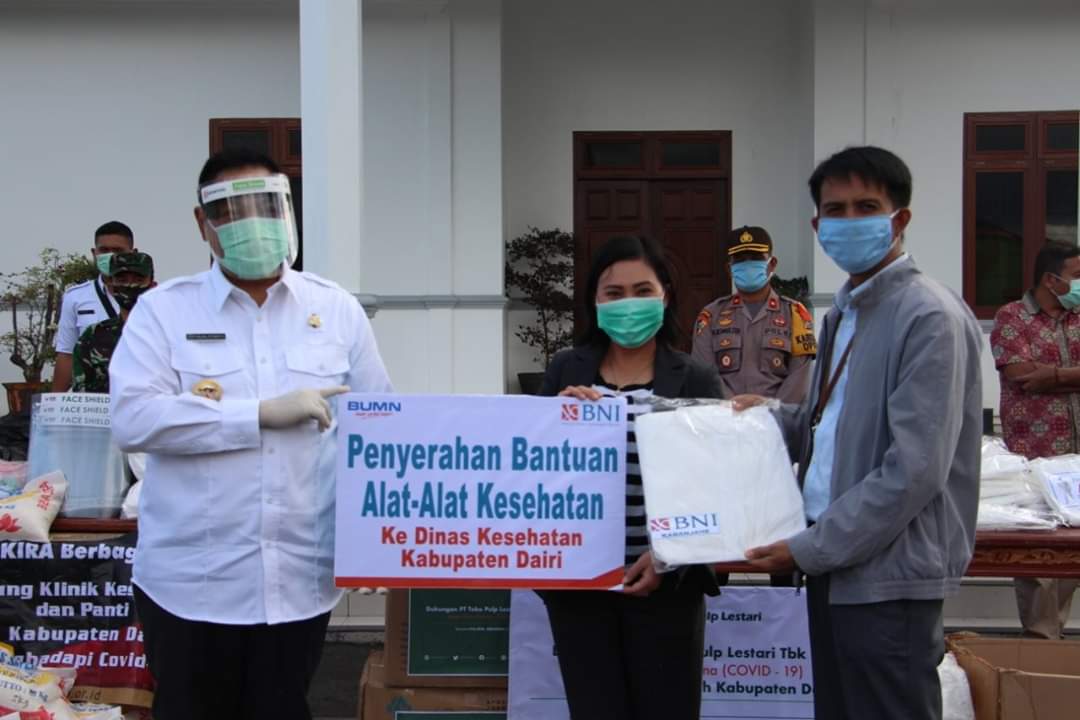 SIDIKALANG | bongkarnews.com – Pemerintah Kabupaten Dairi melalui Gugus Tugas Percepatan Penanganan Corona Virus Disease (Covid-19) mendapat berupa bantuan Alat Pelindung Diri (APD) dari masyarakat dan perusahaan swata juga perusahaan BUMN yang peduli melawan wabah pandemi Covid-19 yang terjadi di Indonesia, khususnya di wilayah Kabupaten Dairi.