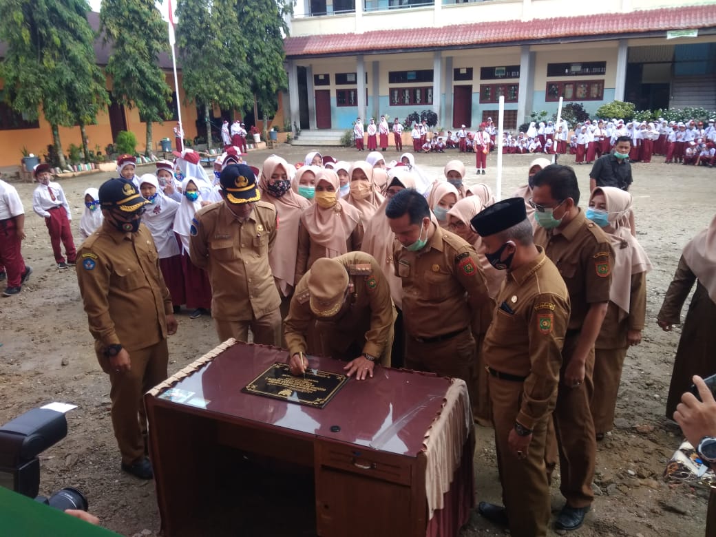 Selesai pelaksanan upacara bendera . Walikota H. Alfan Alfian Bintang.SE.yang di dampingi Kadisdikbud .H.Sairun.S.Ag. Kasek.SDN.2 Simpang kiri .Edy Mizan.S.pd. Kadis Komimfo.Baginda Nasution.SH.MM.Kakan Kesbangpol.Khairunnas.SE. Kabid . Dikdasmen.Syahrul.menuju meja penandatangan Prasasti yang di tanda tangani oleh walikota H.Alfan Alfian Bintang.SE. dan.pengguntingan pita peresmian gedung bertingkat yang sudah serah terima dari pihak Kontraktor lokal. kepada Dinas pendidikan dan kebudayaan kota Subulussalam melalui anggaran Dana Otsus 2020.untuk di pakai SDN 2 simpang kiri.