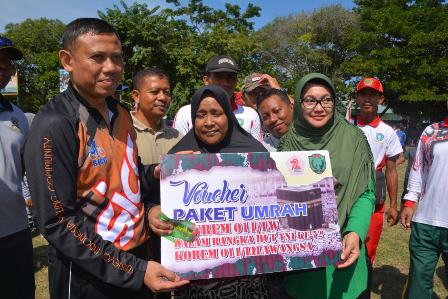 Lhokseumawe | BN – Warga Kampung Keramat, Kecamatan Banda Sakti, Kota Lhokseumawe, Jalan Baro, Nursiah (55), menerima hadiah voucher Umroh dari Komandan Korem (Danrem) 011/Lilawangsa Kolonel Inf Agus Firman Yusmono didampingi Ketua Persit Kartika Chandra Kirana Koorcab Rem 011 Ny Marini Agus Firman Yusmono, di Lapangan Jenderal Sudirman Korem 011/Lilawangsa, Lhokseumawe, Minggu (15/10/2017).