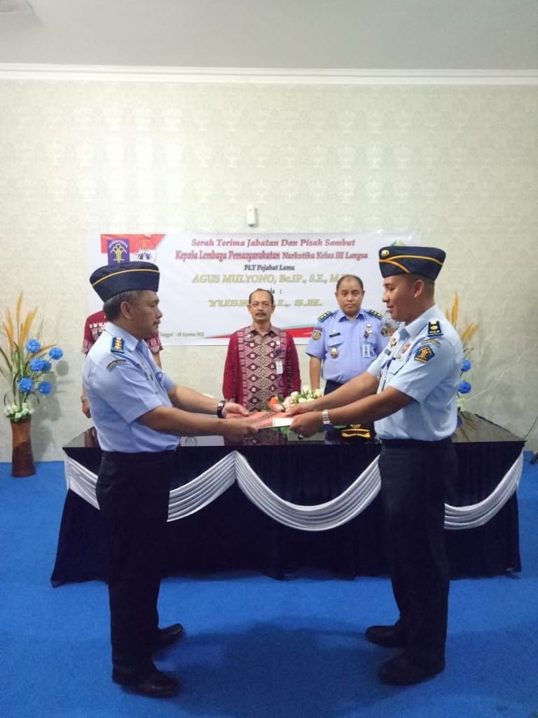 Kota Langsa | Bongkarnrws.com – Serah terima jabatan Kepala Lembaga Pemasyarakatan Kelas III Narkotika Langsa dari Agus Mulyono, Bc.IP, SH kepada Yusrizal, SH disaksikan langsung oleh Kepala Divisi Pemasyarakatan Aceh Drs. Meurah Budiman, SH. MH.