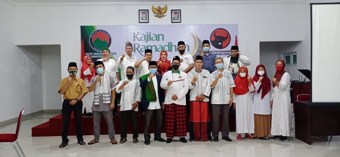 Dewan Pimpinan Daerah Baitul Muslimin Indonesia (DPD BAMUSI) Provinsi Sumatera Utara menggelar Kajian Ramadhan ke 3 di Aula Bung Karno Kantor DPD PDI Perjuangan Sumut Jalan Jamin Ginting Nomor 86 Medan, Jumat (7/5/2021).