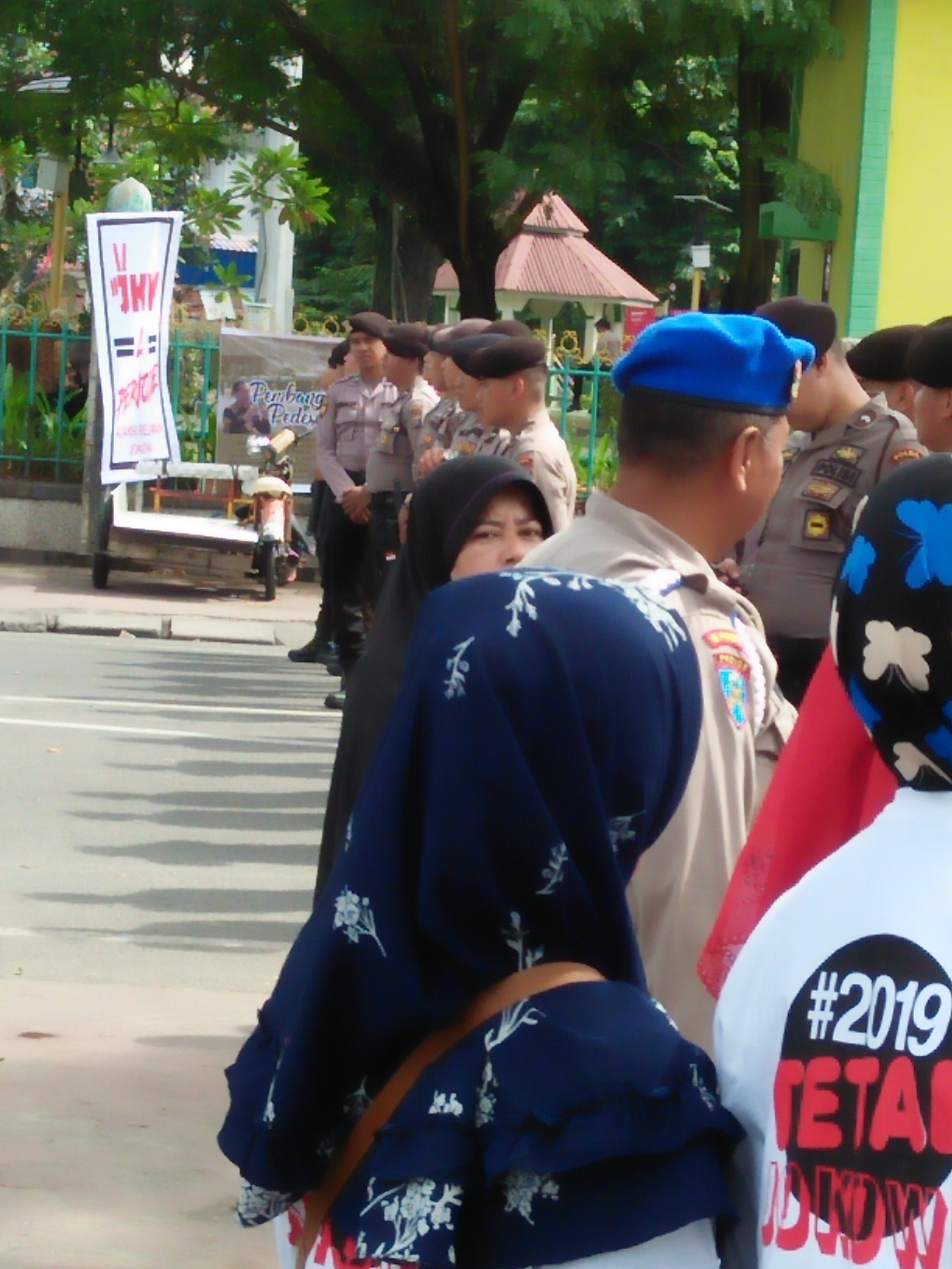 Diakhir acara ada hal unik yang juga menjadi sorotan ribuan mata ditengah hiruk pikuk massa. Terlihat segerombolan massa mengerumuni mobil polisi. Seorang polisi wanita dibantu 2 personil polisi sedang membagi-bagikan jeruk dan minuman mineral ke massa.