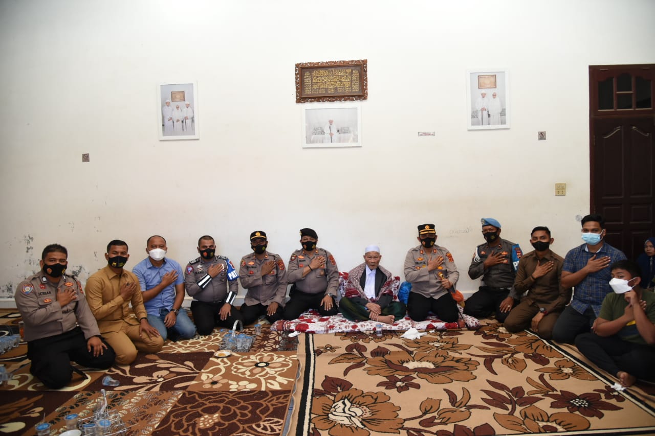 Bireuen – Kapolres Bireuen, AKBP Taufik Hidayat SH SIK MSi yang didampingi PJU dan stafnya, bersilaturarrami ke kekediaman ulama kharismatik Aceh, Tgk H Usman Ali yang lebih akrap disapa Abu Kuta Krueng, Kamis (22/7).