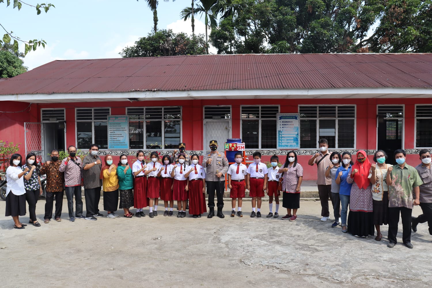 SIMALUNGUNI bongkarnews.com- Kapolres Simalungun AKBP Nicolas Dedy Arifianto SH, SIK MH meninjau pelaksanaan kegiatan Vaksinasi Merdeka Anak umur 6-11 tahun yang bertempat di SD Negeri 095551 Jalan Asahan Kecamatan Siantar Kabupaten Simalungun, Jumat (14/1/2022) siang sekira pukul 12.30 Wib.