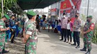 SIMALUNGUN I bongkarnews.com-Kapolsek Bangun AKP L.S Gulttom SH bersama Danramil Bangun Kapt Inf P Siagian,Pangulu Nagori Siantar Estate Rusdi, Tokoh Masyarakat dan Gamot/Perangkat Nagori meninjau pelaksanaan vaksinasi massal Dosis I bertempat di Jalan umum Nagori Siantar Estate Kecamatan Siantar Kabupaten Simalungun, Kamis (2/12/2021).