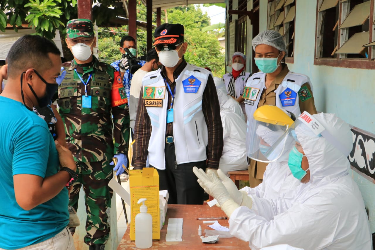 “Di RS Perdagangan kemudian di uji swab dan hasilnya positif Covid-19, karena itu maka dilakukan Rapid test di wilayah ini. Dari 200 sampel hari ini, sebanyak 16 orang dinyatakan reaktif, dan pemeriksaan masih berjalan. Semuanya yang positif Rapid test akan kita rujuk ke RSUD Perdagangan untuk dilakukan uji swab,” ujar Bupati.