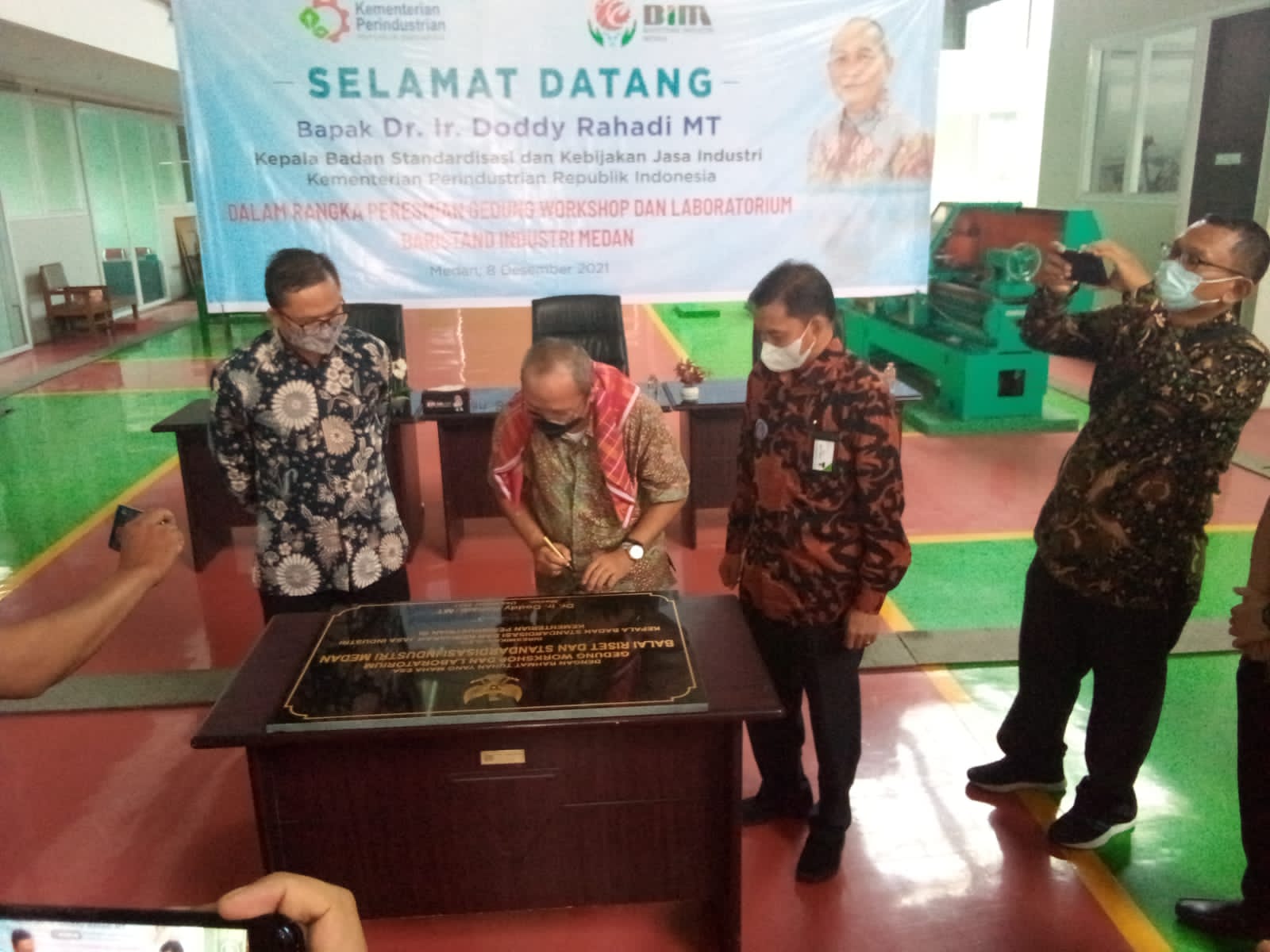 MEDAN | bongkarnews.com –Kunjungan kerja Kepala BSKJI (Badan Standardisasi dan Kebijakan Jasa Industri Kementerian Perindustrian Indonesia) Dr Ir Doddy Rahadi MT, di Balai Riset dan Standarisasi Industri Medan, Rabu (8/12/2021) di Jalan SM Raja no 24 Medan.